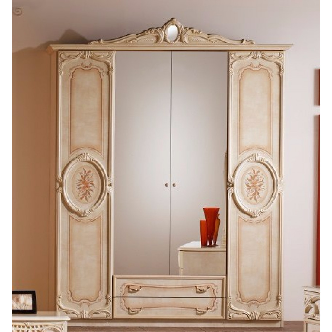 Четырехстворчатый шкаф для одежды Роза (беж) от Российской фабрики "ДИА мебель". Выполнен в элегантном классическом стиле. Бежевый цвет в сочетании с глянцевым покрытием придают еще больше эстетичности. Шкаф поделен на две большие части, каждая из которых имеет не только вместительные полки для белья но и штангу для вешалок. Такой шкаф поможет с легкостью сэкономить место и удивит Вас своей компактностью.