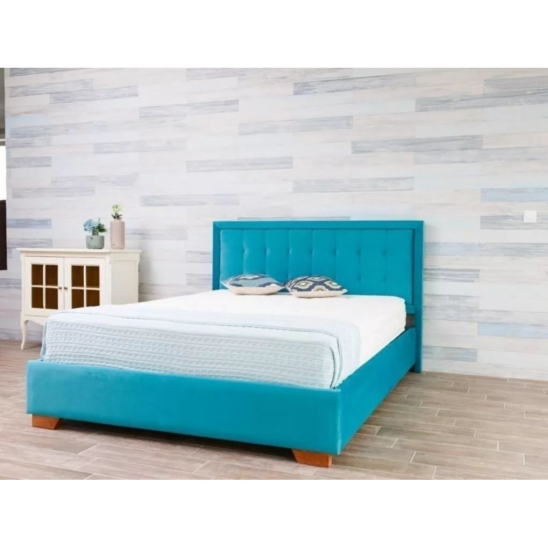Кровать оснащена встроенным основанием для матраса — прямыми ламелями из березовой фанеры.
