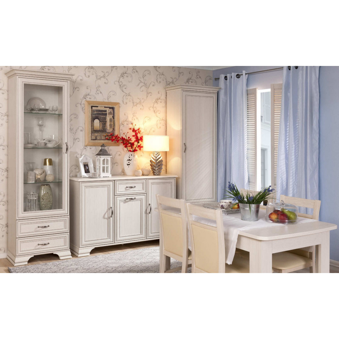 Гостиная Тиффани - это классика, которая всегда остается модной и стильной. Сочетание светлого оттенка с древесной структурой, нежных фасадов, обрамленных изящными планками с патиной и качественных металлических ручек создадут атмосферу тепла и уюта, а возможность использования подсветки делает эту коллекцию особенно привлекательной. Основное достоинство TIFFANY - эстетическая функциональность, которая роскошно дополнит различный по назначению интерьер.