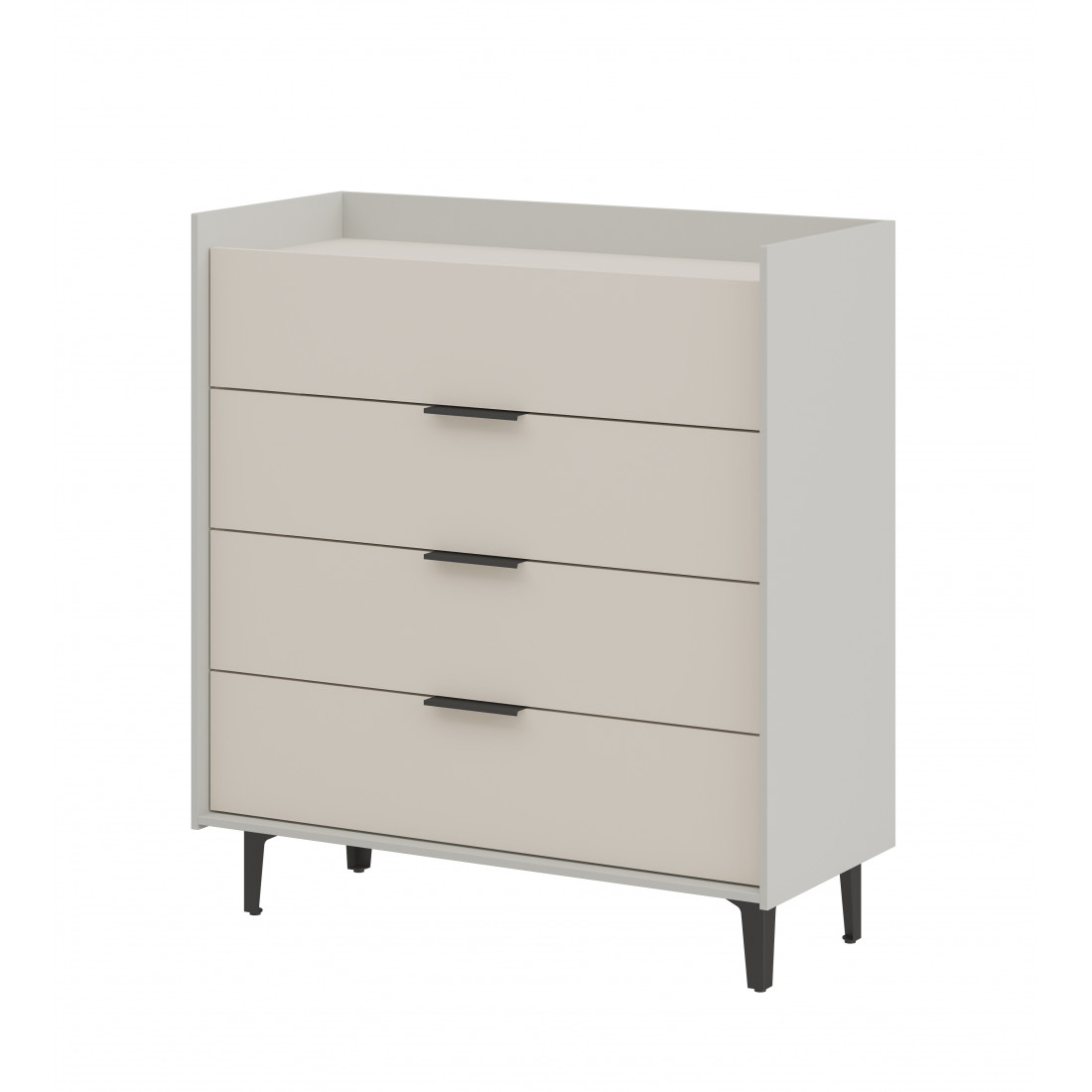 Элегантная комод Модена станет идеальным дополнением для вашей гостиной. Выберите из трех стильных вариантов цветов: Белый-Дуб Элисон, Лунный камень-жемчуг, Металл Бруклин-лунный жемчуг. Ножки из металла обеспечивают устойчивость.