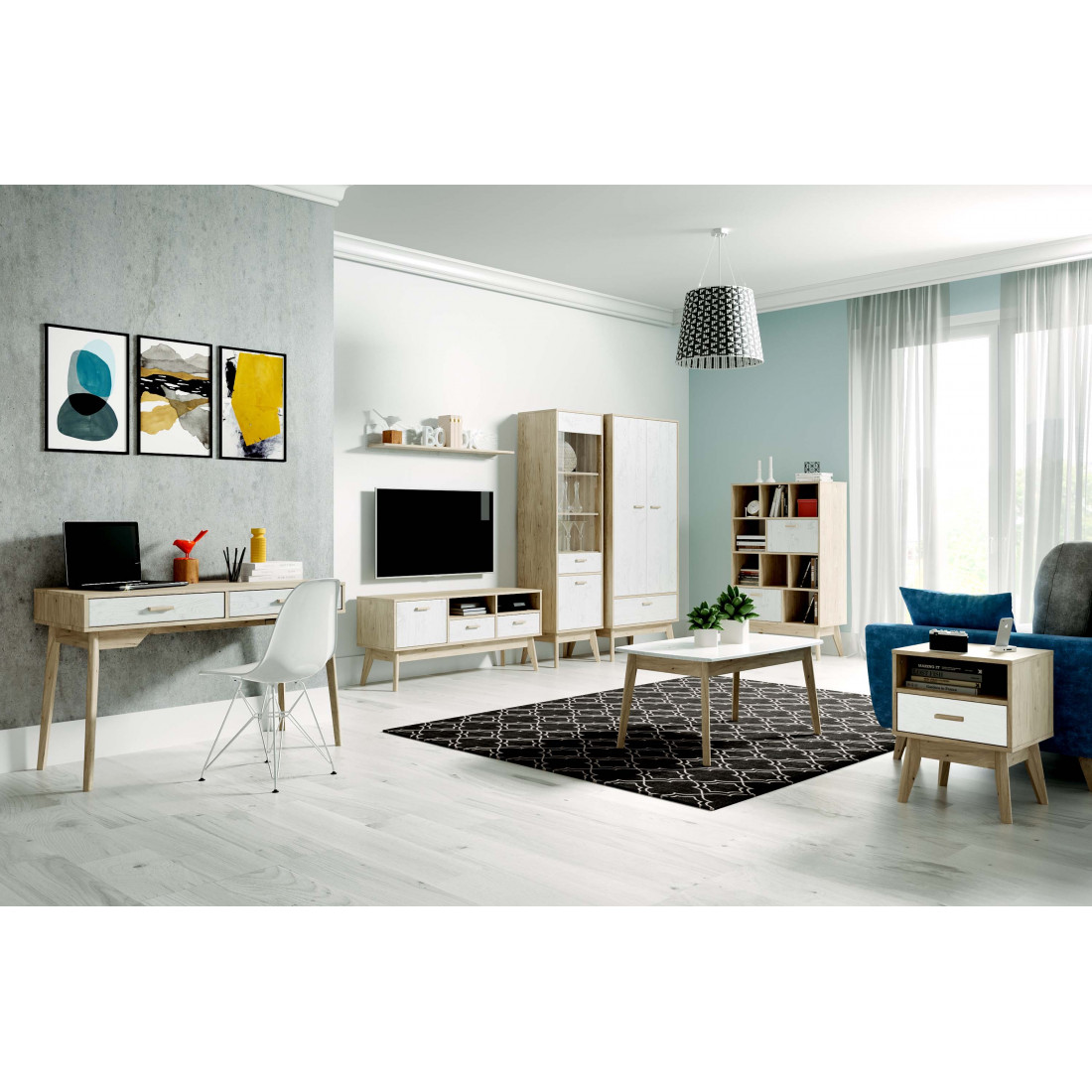 Ультратрендовый журнальный стол Калгари от Мебельград, выполненный в светлых тонах с элементами сдержанного стиля 60-х - высокие ножки, выраженная деревянная текстура натурального дуба, четкие формы. Вся мебель очень мобильная, компактная, вызывает чуство легкости и свободного пространства, при этом она функциональна.