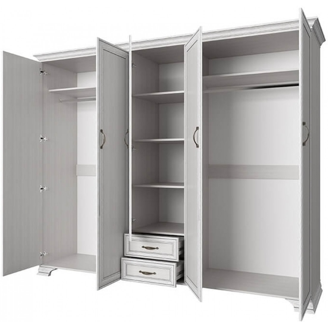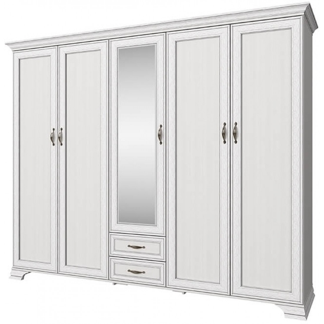 Пятистворчатый шкаф для одежды с зеркалом Тиффани 5DG2S Z крем вудлайн