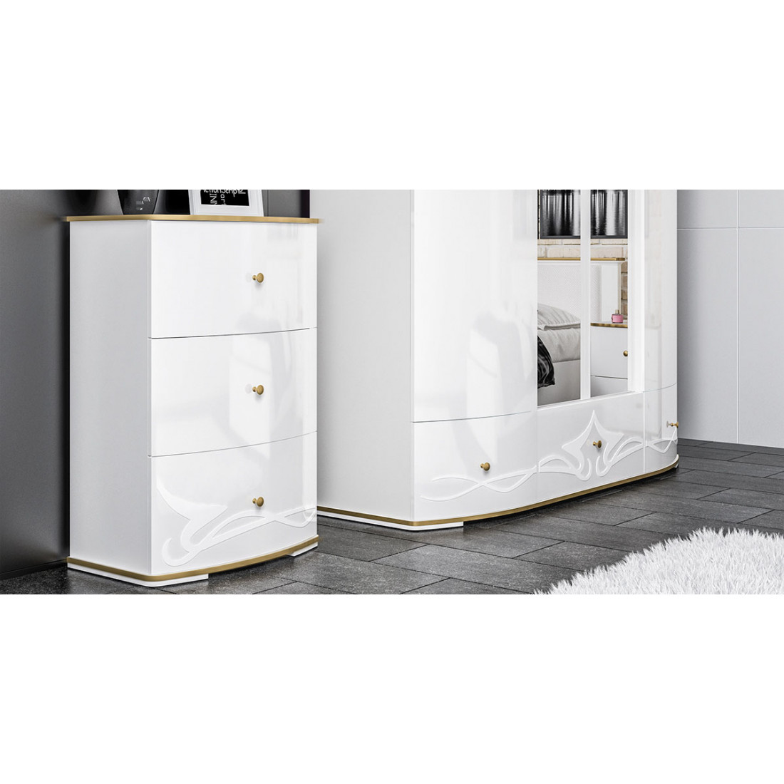 Новая коллекция Либерти - свежий взгляд в современных тенденциях мебельной моды и свежее дыхание для Вашей спальни. Светлые тона, эксклюзивное дизайнерское оформление, все это выглядит как уникальное решение для комнаты отдыха. Для большего комфорта, кровать выполнена с мягким изголовьем, а предусмотренная система хранения увеличит полезное пространство комнаты. Приятным дополнением служат изящные металлические ручки и система демпфирования для систем выдвижения!