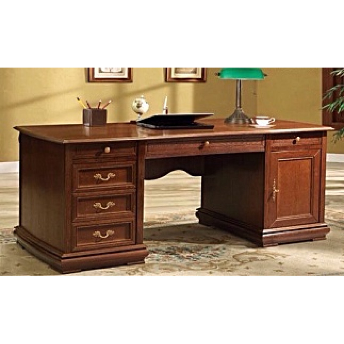 Настоящей изюминкой домашнего кабинета может стать письменный стол из коллекции "Оскар". Натуральная фактура дуба, тонкие оттенки цветовой гаммы и фурнитура из золота и черненного серебра придают столу поистине аристократичный вид. На представительной дубовой столешнице гармонично смотрятся и современные гаджеты и раритетные письменные принадлежности. Дно ящиков обращает на себя внимание великолепной велюровой отделкой.