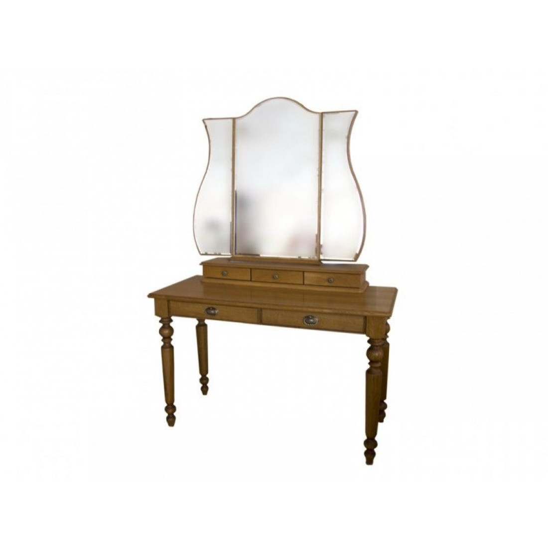 Такой изысканный предмет обстановки, как туалетный стол Лика, производства «Молодечномебель», уместен в любой комнате. Вместе с тем, изделие весьма функционально. Столик оснащен удобным тройным зеркалом и четырьмя небольшими выдвижными ящиками. Выполнен в цвете "Медовый дуб с золотой патиной".