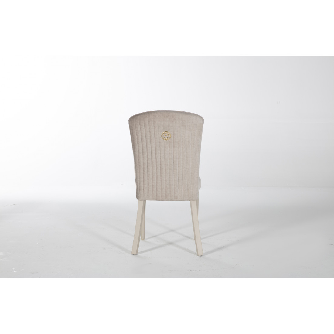 Комплект из двух стульев Sanvito в стилистике всей коллекции. В дизайне присутствуют вертикальные линии, цветовая гамма — кремовая. Стулья имеют мягкое сидение и спинку. Они замечательно сочетаются со столом Sanvito и с другой мебелью данной серии.
