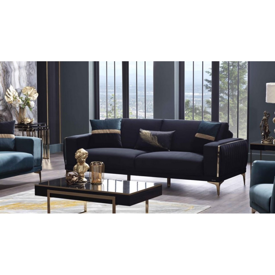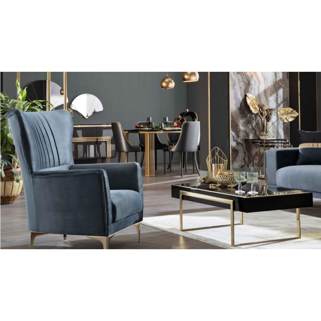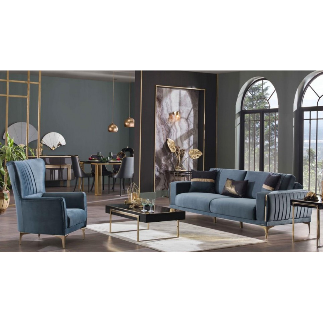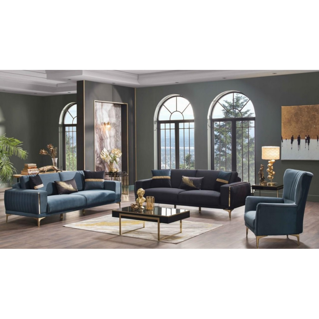 Сочетание синего, напоминающего цвет океана, и золота придётся по душе настоящим ценителям красоты и комфорта