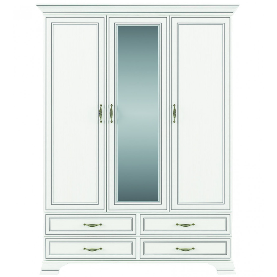 Трехстворчатый шкаф для одежды с зеркалом Тиффани 3D4S крем вудлайн